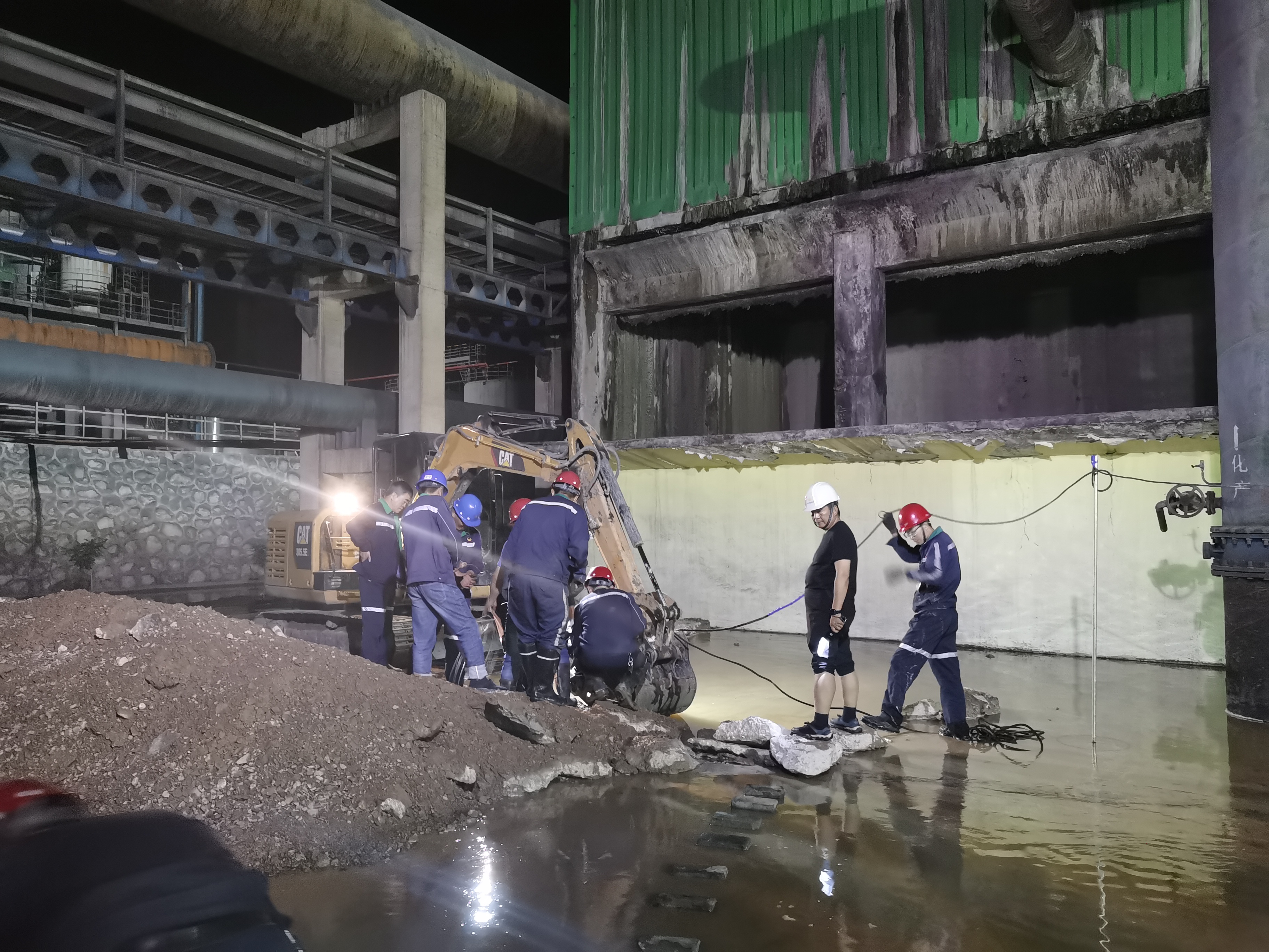 经过近50个小时的全力以赴、昼夜抢修,循环水回水管线终于在7日晚22时恢复正常运转。这次循环水回水管线抢修事件,真是与时间赛跑的“拼命”事,32小时的紧急攻坚,排除渗漏险情,恢复了化产后续工段的循环水正常供应,后续工段工艺指标正在平稳调整。而此时,在泥泞不堪、闷热潮湿的作业空间中奋战了数个小时的抢修人员已是十分疲惫,身上污泥夹杂着汗水,虽然都戴着口罩,却遮不住他们脸上的欣慰与自豪。