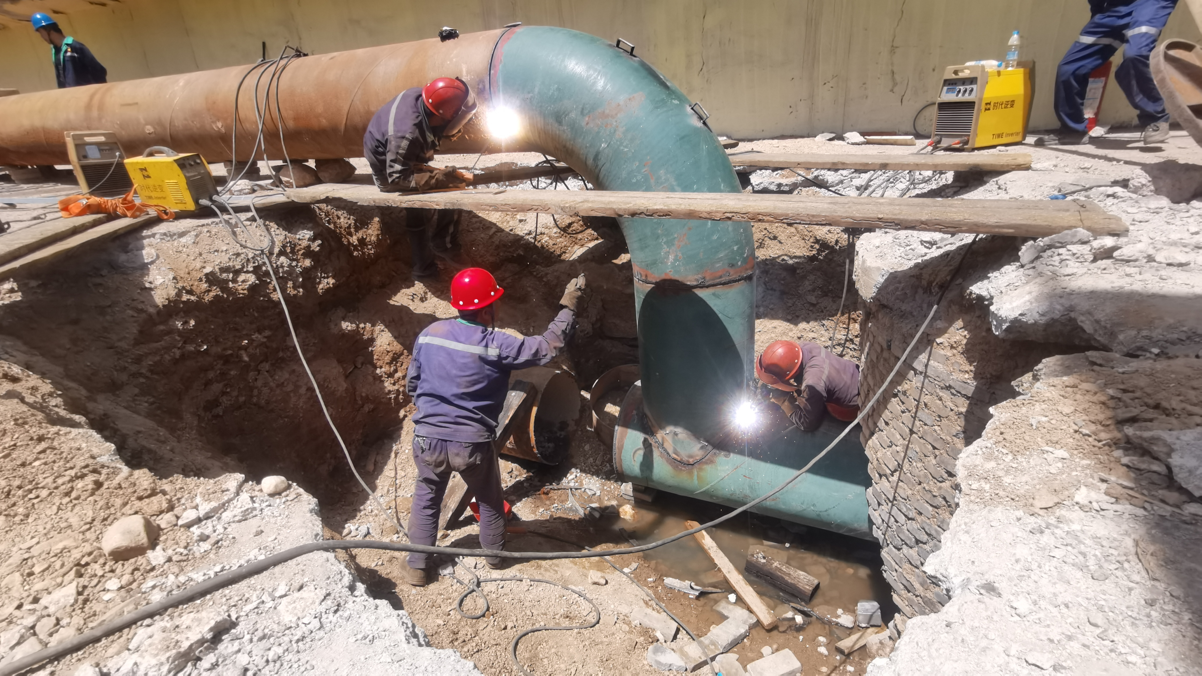 6月6日7点多,所有人又齐聚现场继续协商解决方案。地埋管道由于近10年的使用,腐蚀严重,已无法补焊。一个严峻的问题摆在面前,则是抢修如何开展。直径700mm的大型成品抢修管件并无库存,采购调运时间长,管件无法及时运送到位。战斗打响在即,每一秒的等待都将造成更大的损失和隐患。