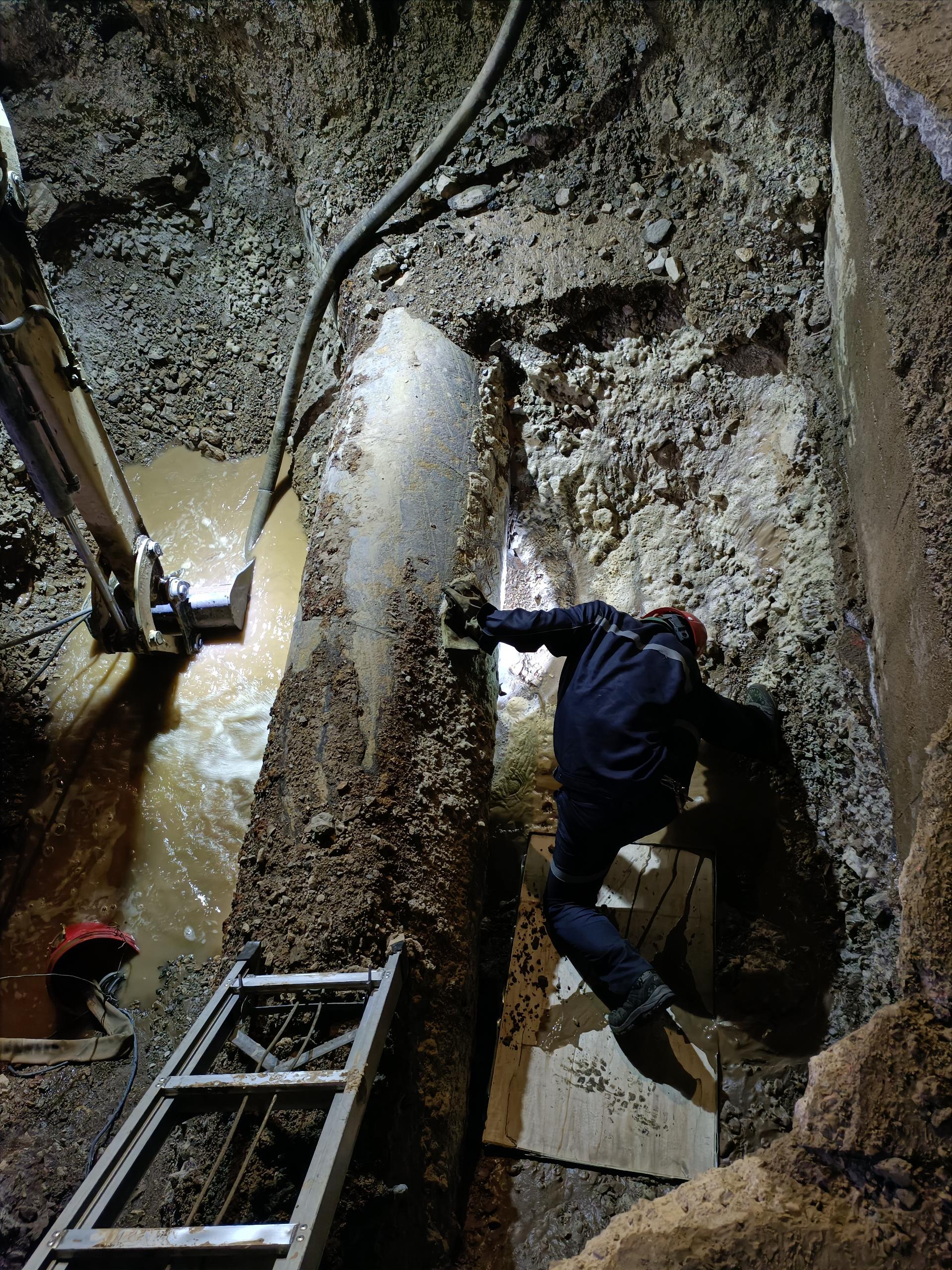 挖掘机到场后祁加利指定开挖位置,挖掘机司机开始了小心翼翼的开挖。接近管道时,挖掘机不能再挖,化产车间的岗位人员冒着泥水用铁锹挖开管道上的泥土,抽排积水。从晚上21点至次日凌晨3点,经过细致挖掘、清理,管道底部发现有大量循环水喷射,管道泄露部位确定。当作业人员在管线渗漏处查验后发现管道底部渗漏处长达30cm,在场领导初步决定采取焊接贴合管道后盲板封堵的方案进行,当焊接时发现底部管道腐蚀程度已不能承受焊接强度,多名电焊工轮番试焊但最终还是未将盲封盒焊接,时间已经是6日凌晨6点了,所有人还在现场苦思着应对良策……