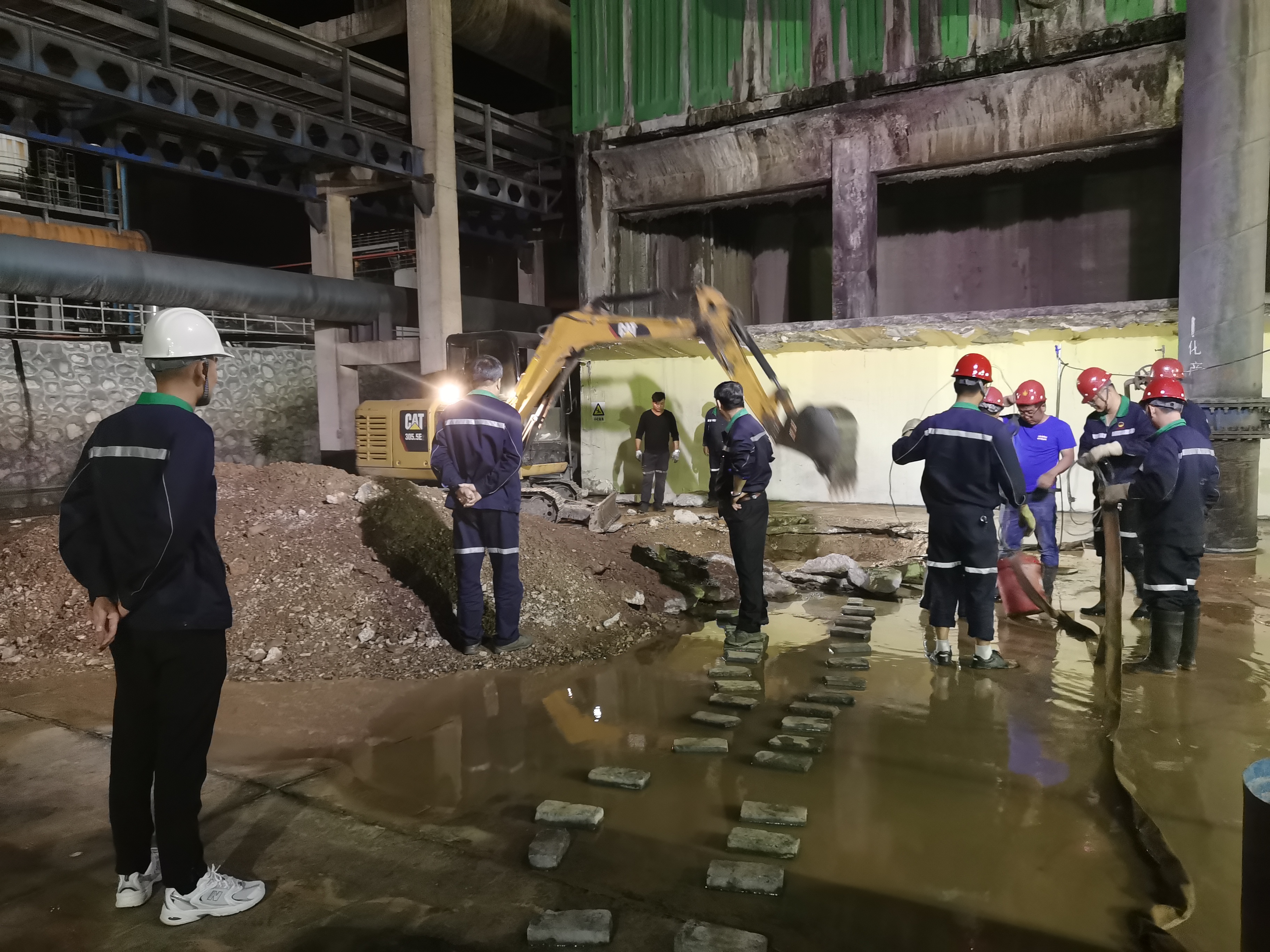 虽然是周六休息日,且在下班时间,常务副总经理何铭基、副总经理张晨得知生产情况后,第一时间赶赴现场,询问基本情况后,与车间领导立即进入现场查看。听取车间汇报后,确定泄露由DN700mm化产走后续工段循环水回水主水管道破裂引起。