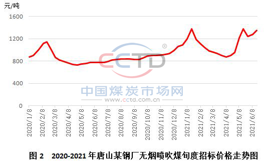 端午节过后,无烟喷吹煤市场成交活跃,下游接货意愿增加,采购价不断上调,后半周主产地低价煤价格普遍上调。据CCTD数据监测,6月份以来,山东部分钢厂无烟煤喷吹煤价格上调20-60元/吨,部分钢厂上调累计上调70元/吨;中旬唐山某钢厂无烟喷吹煤招标价上调78元/吨,至1354元/吨,本月已累计上调116元/吨。主产地出厂价格应声上涨,长治地区地方煤矿无烟喷吹煤上调140元/吨,涨后挂牌价1220元/吨。