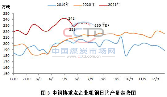 按计划,6-7月份有一部分高炉投产,产能将继续释放。政策端,考虑到大宗商品价格过快上涨、在下游传导不顺畅造成制造业成本高企等因素,预期7月份限产政策将继续让位保经济稳定增长,短期内高炉开工将继续维持高位,对6月中下旬和7月上旬产量继续维持230万吨以上水平判断维持不变(见)。受此影响,下游将对喷吹煤采购需求维持刚需,尤其是对低价喷吹煤需求旺盛。