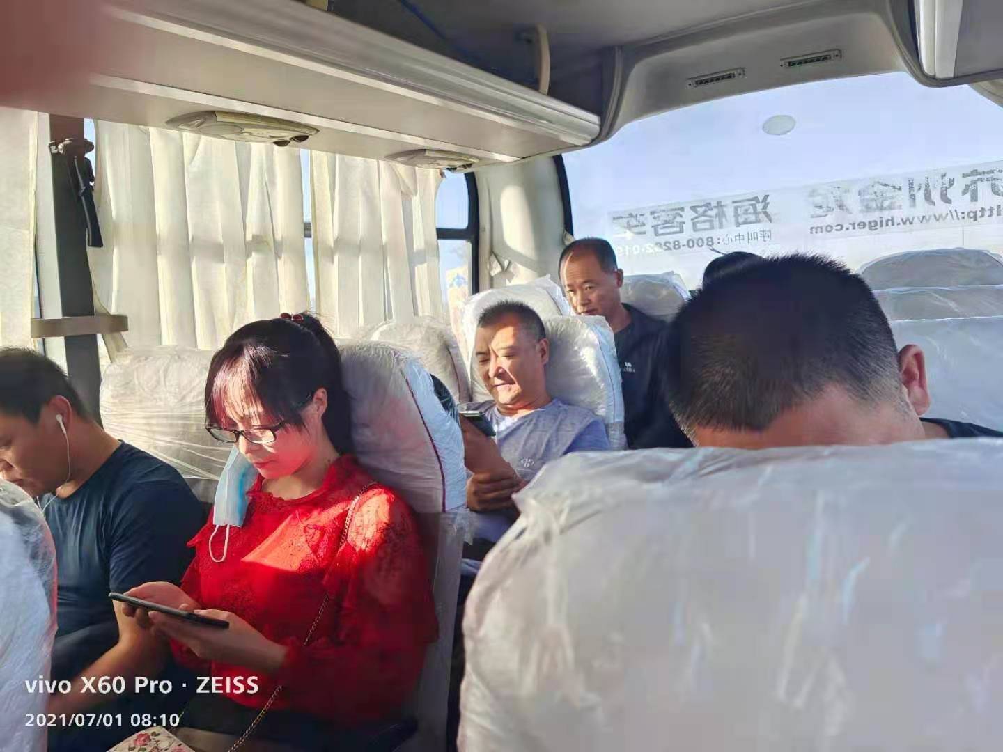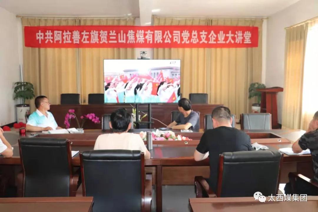 兰山煤业公司部分党员在通勤车上通过手机观看直播