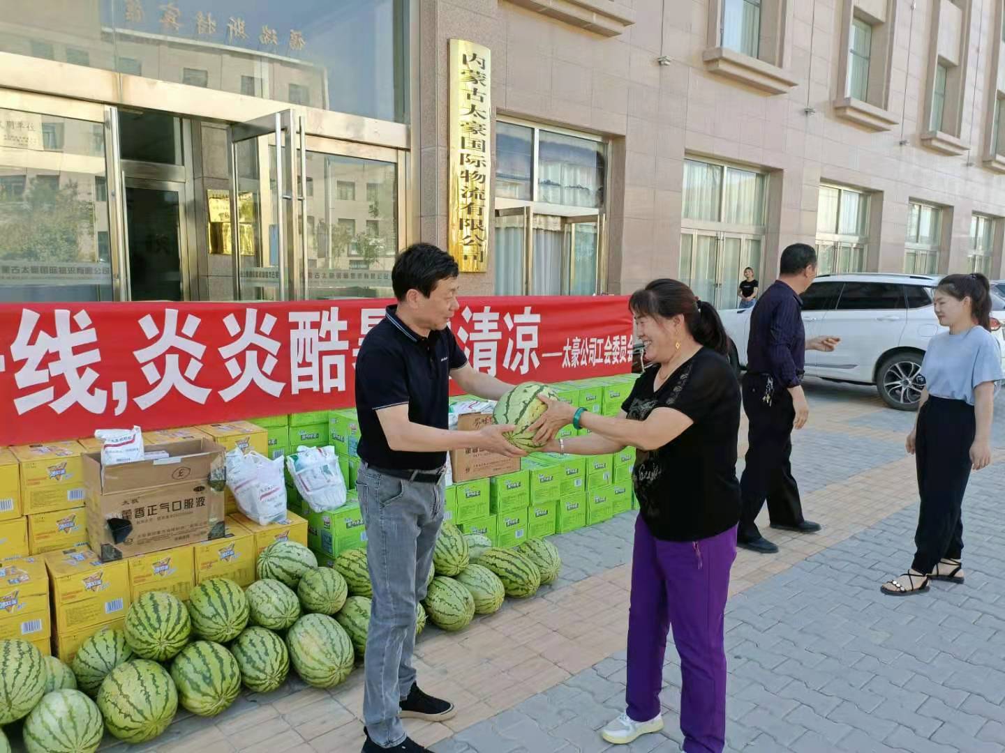 为切实做好防暑降温工作,保障职工人身安全和职业健康,7月12日,太豪物流公司工会委员会精心部署,认真组织,扎实开展“不忘初心系一线,炎炎酷暑送清凉”慰问活动,为一线职工送去组织的关怀和夏日的清凉。此次送清凉活动,共为职工送去6800余斤西瓜、250余箱饮料以及120余份防暑药品。