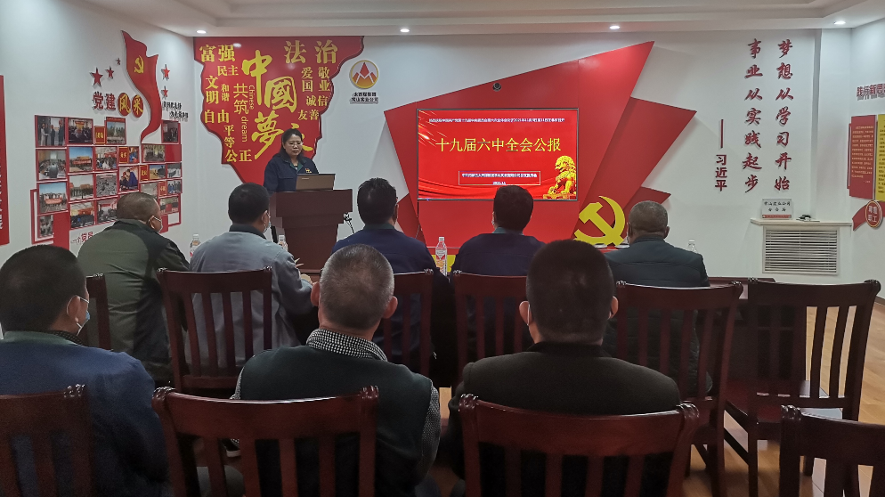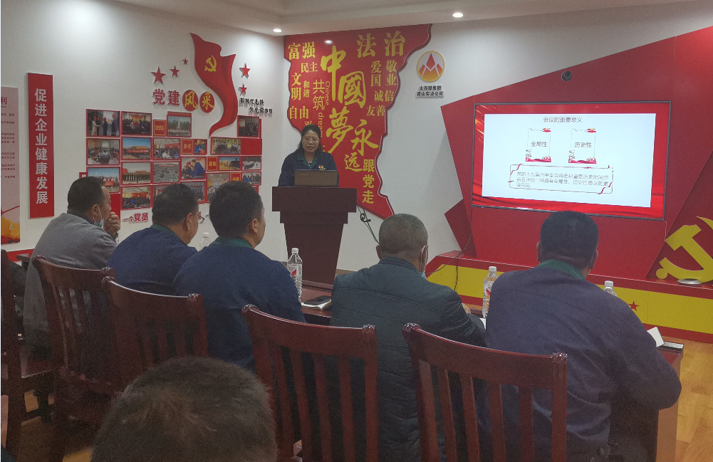 11月20日,太西煤常山多元合金公司举行了学习党的十九届六中全会精神主题党日活动。会上,由党总支委员王凤英领学了《中国共产党第十九届中央委员会第六次全体会议公报》内容。通过集中学习,党员干部们对十九届六中全会重要意义、审议通过的决议、党的百年奋斗的重大成就和历史经验等有了更直观、全面、深入的理解,使大家思想上受洗礼、精神上受鼓舞。