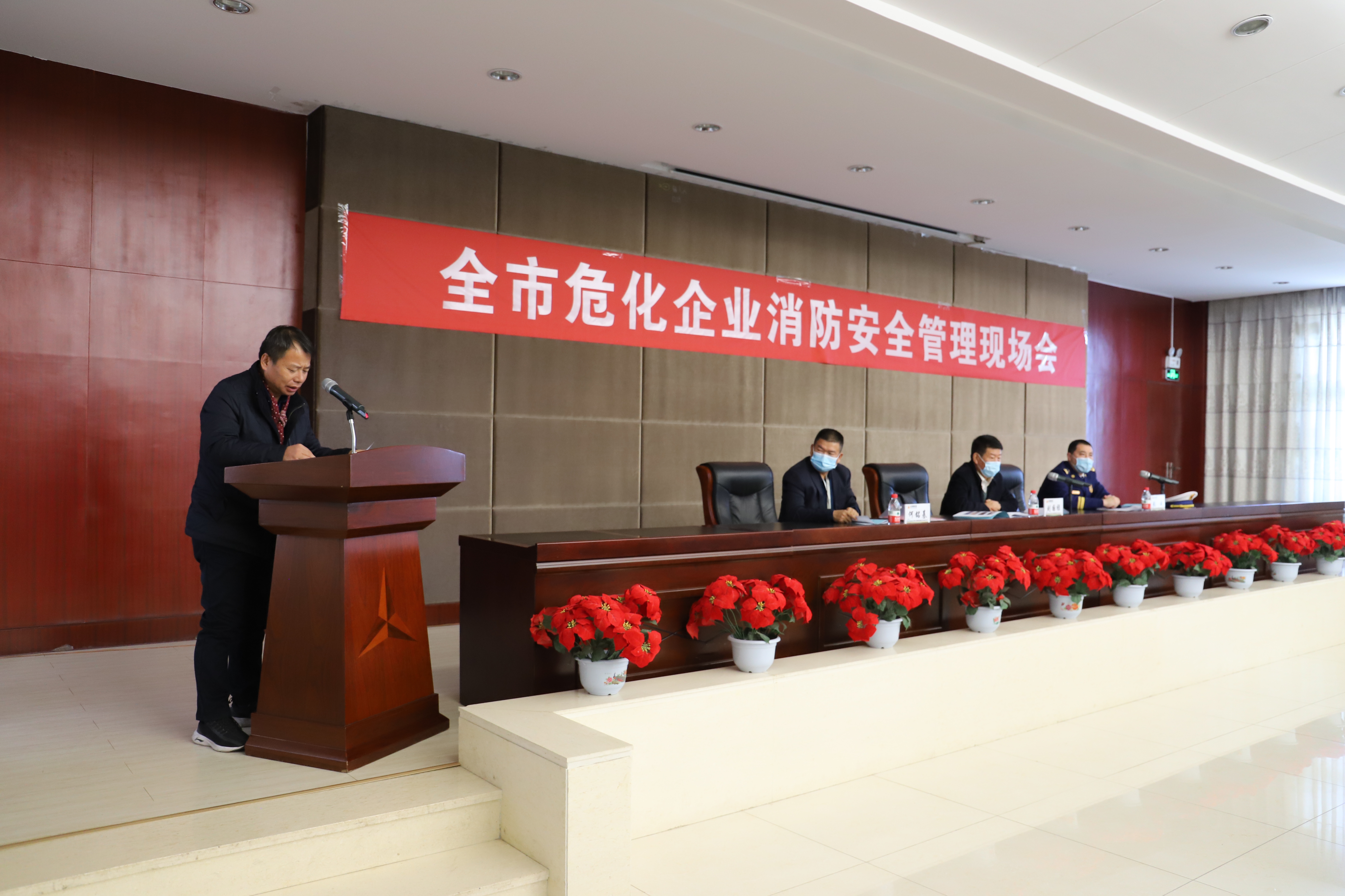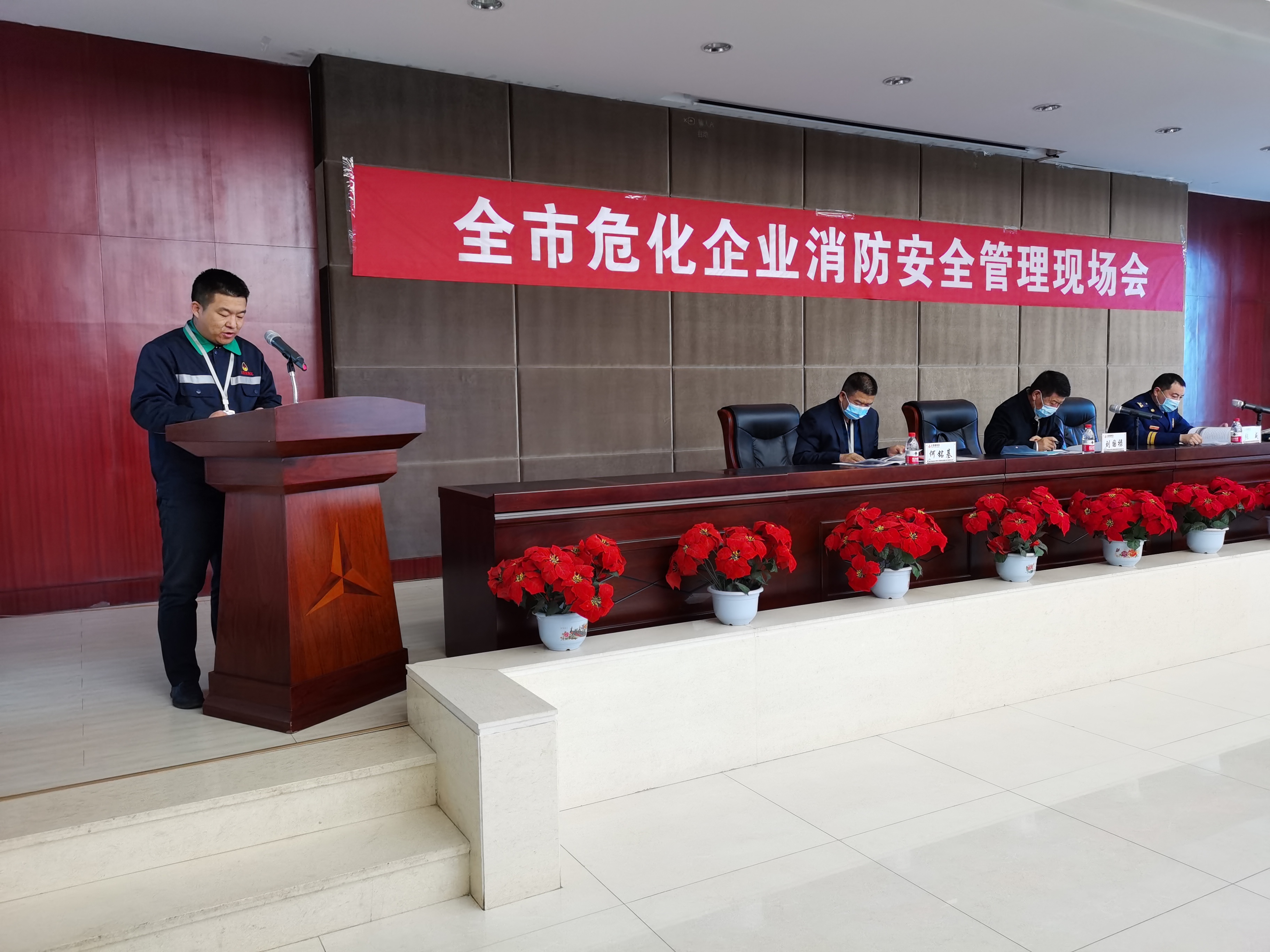 12月3日上午,金昌市危险化学品企业消防安全管理现场会在金昌鑫华焦化公司举行。金昌市应急管理局局长刘国禄、市消防救援支队支队长张威、金昌鑫华焦化公司常务副总经理何铭基主席台就坐,金昌鑫华焦化公司王书生、张晨参加。市应急管理局、市消防救援支队、全市金川区辖区企业22家、永昌县辖区企业25家危化品消防重点单位的近130余人参会观摩。此次活动由金昌市消防支队主办,金昌鑫华焦化公司承办。