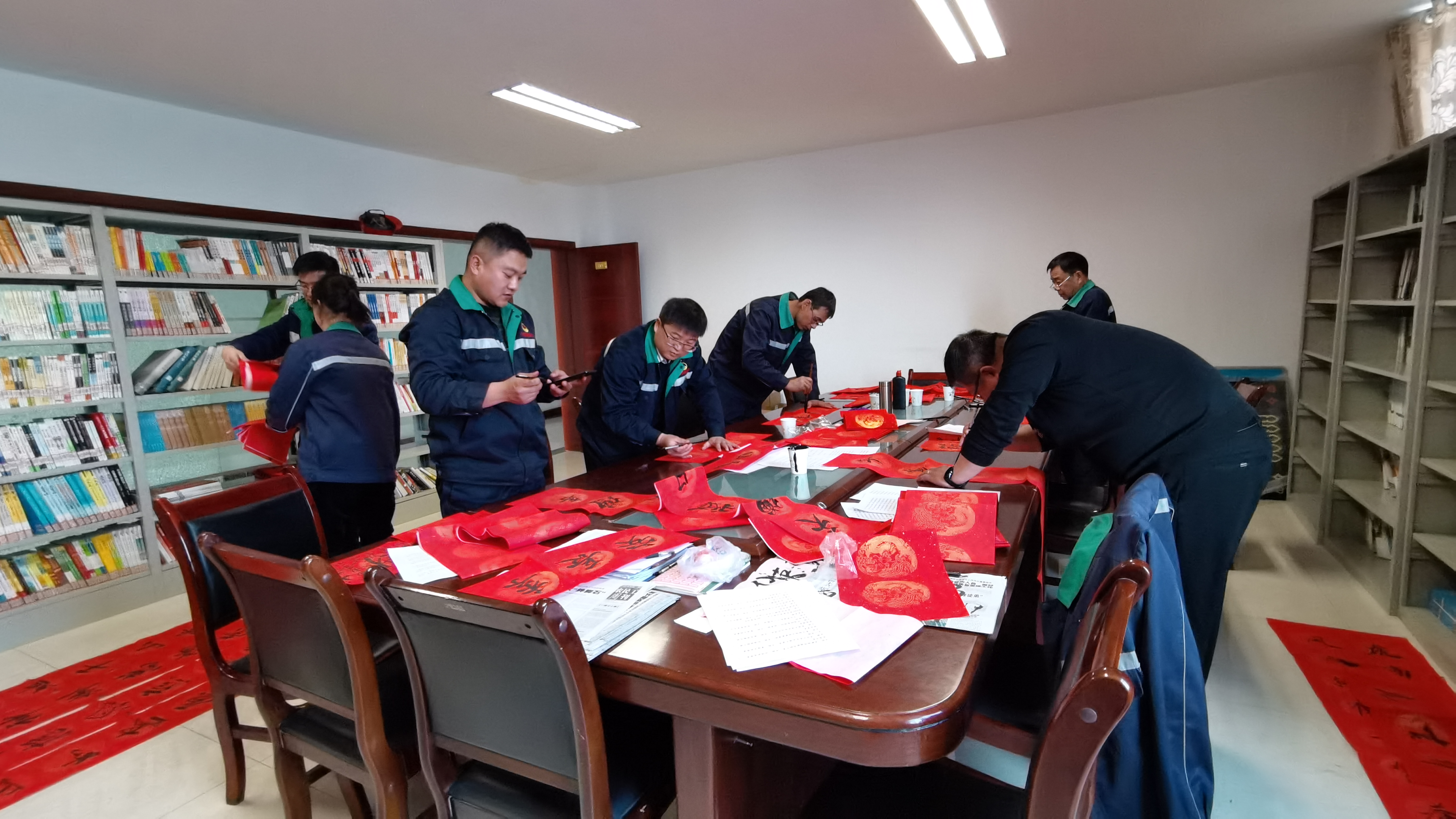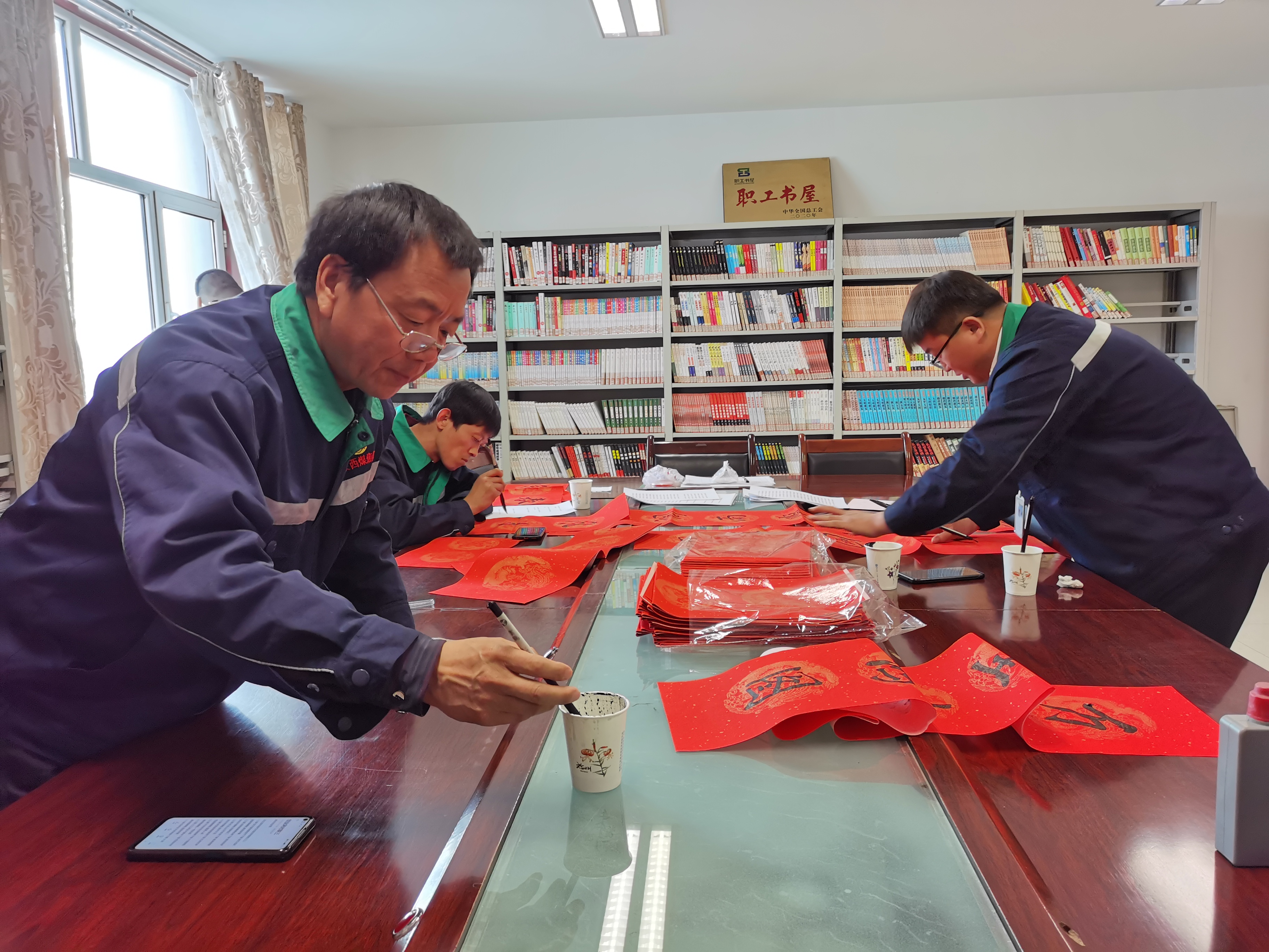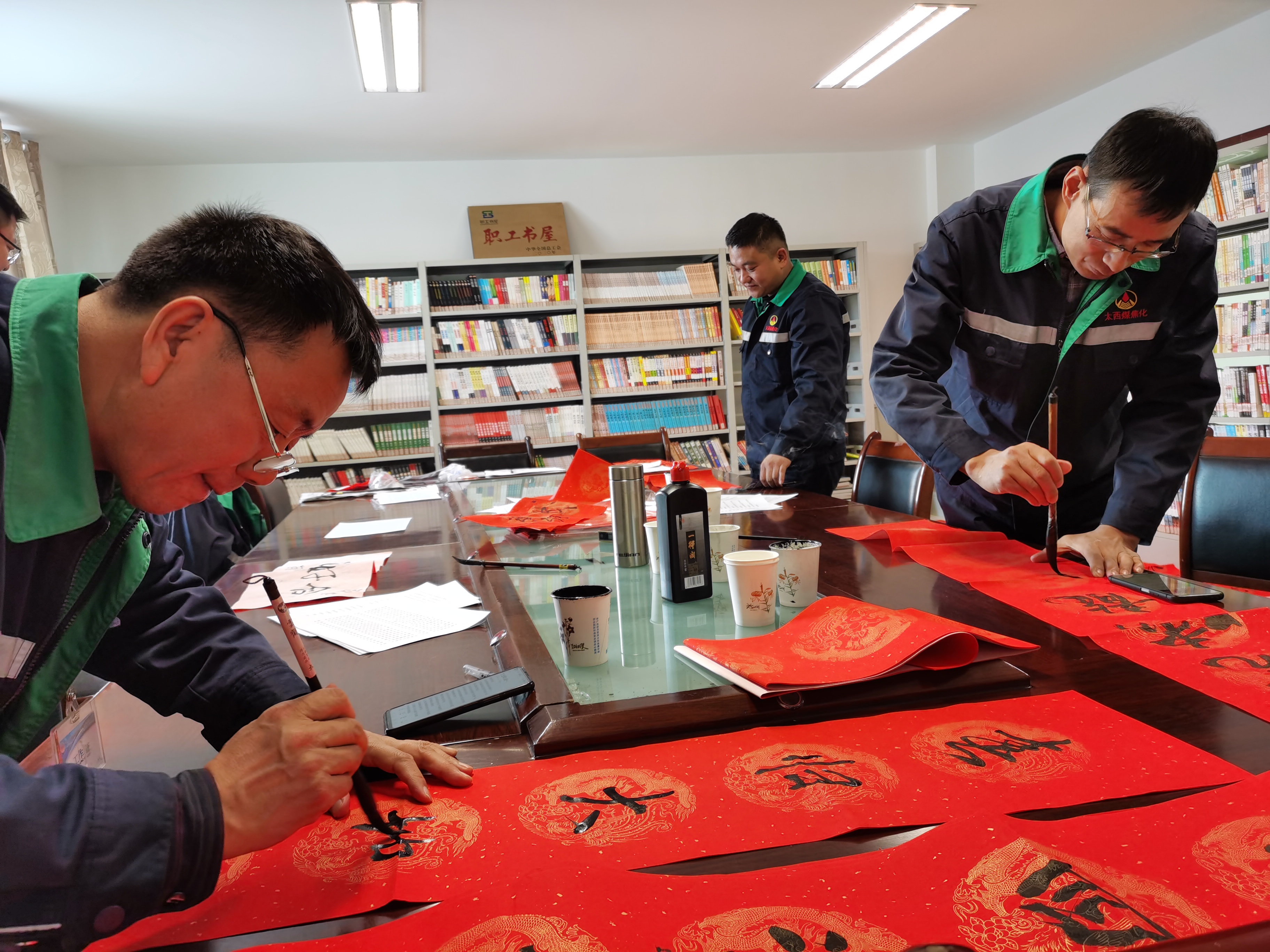 书写现场,公司书法爱好者们饱蘸浓墨,润圆笔锋,提笔挥毫,随着笔锋或抑或扬。“乌金传奇谱新篇,焦化丰收续华章”“焊花飞溅添异彩,机床歌唱创精品”,这些春联寓意美好,符合生产区域张贴的春联,充满寄语、喜庆、吉祥、向上、和谐;一个个饱含神韵的“福”字在行云流水间新鲜出炉。浓浓的情意、真诚的祝福,洋溢于字里行间,让各车间、部室感受到这数九寒冬的阵阵温暖和浓厚的节日气息。