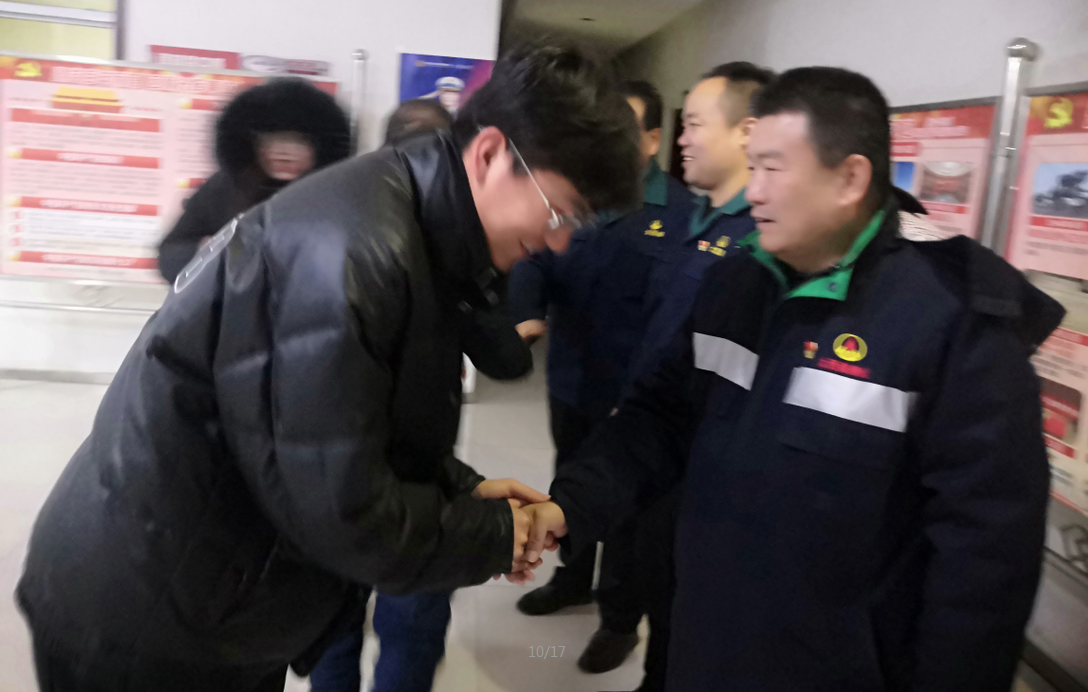 中午时分,甘肃太启新能源公司副总经理、公司负责人何铭基,与驱车赶到公司的甘肃太启新能源公司综合部部长张晨一道,代表甘肃板块领导看望了公司机关工作人员,转达了甘肃太启新能源公司领导的新年祝福和美好祝愿,鼓励大家新的一年要按照新目标新要求,以更加良好的精神风貌、更加务实的工作作风做好本职工作,齐心协力迎接新的发展机遇和挑战。