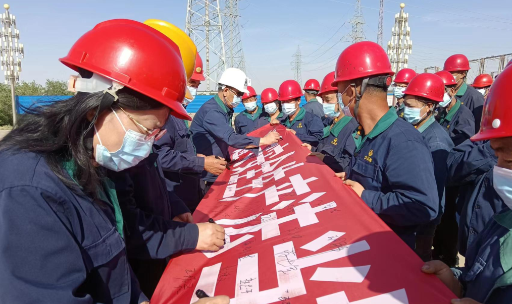 启动仪式上,公司在家的领导和员工在“遵守安全生产法,当好第一责任人”的条幅上签署了自己的名字。