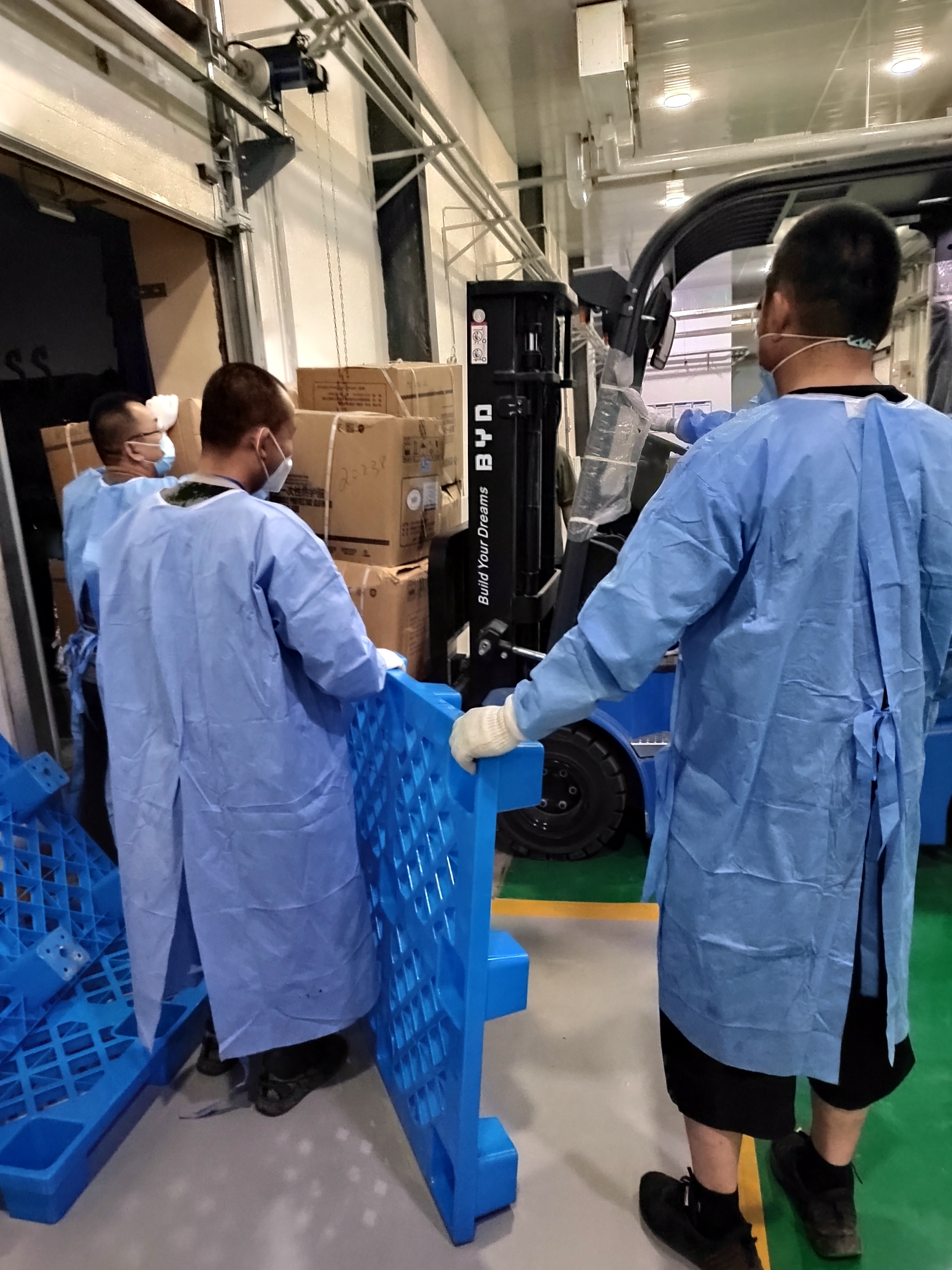 策克口岸地理位置特殊,人员复杂,防控力量紧缺,这给疫情防控工作带来极大挑战。太豪公司党员干部积极响应管委会疫情防控指挥部的号召,用自己的行动诠释初心和使命。志愿服务者在指定的场地上认真做好值班检查工作。公司业务部的志愿者负责抗疫物资的装卸工作,大家身穿防护服,接货、装货、推车、卸货、堆码,来来回回,不辞辛苦,干劲十足,直至凌晨两点才完成搬运工作,有力支援了一线物资急需需求。销售部和运通部门职工积极服务于口岸疫情指挥部锦象国际酒店后勤保障工作,对酒店公共场地进行消杀消毒,清理卫生等,助力疫情防控工作有序开展。