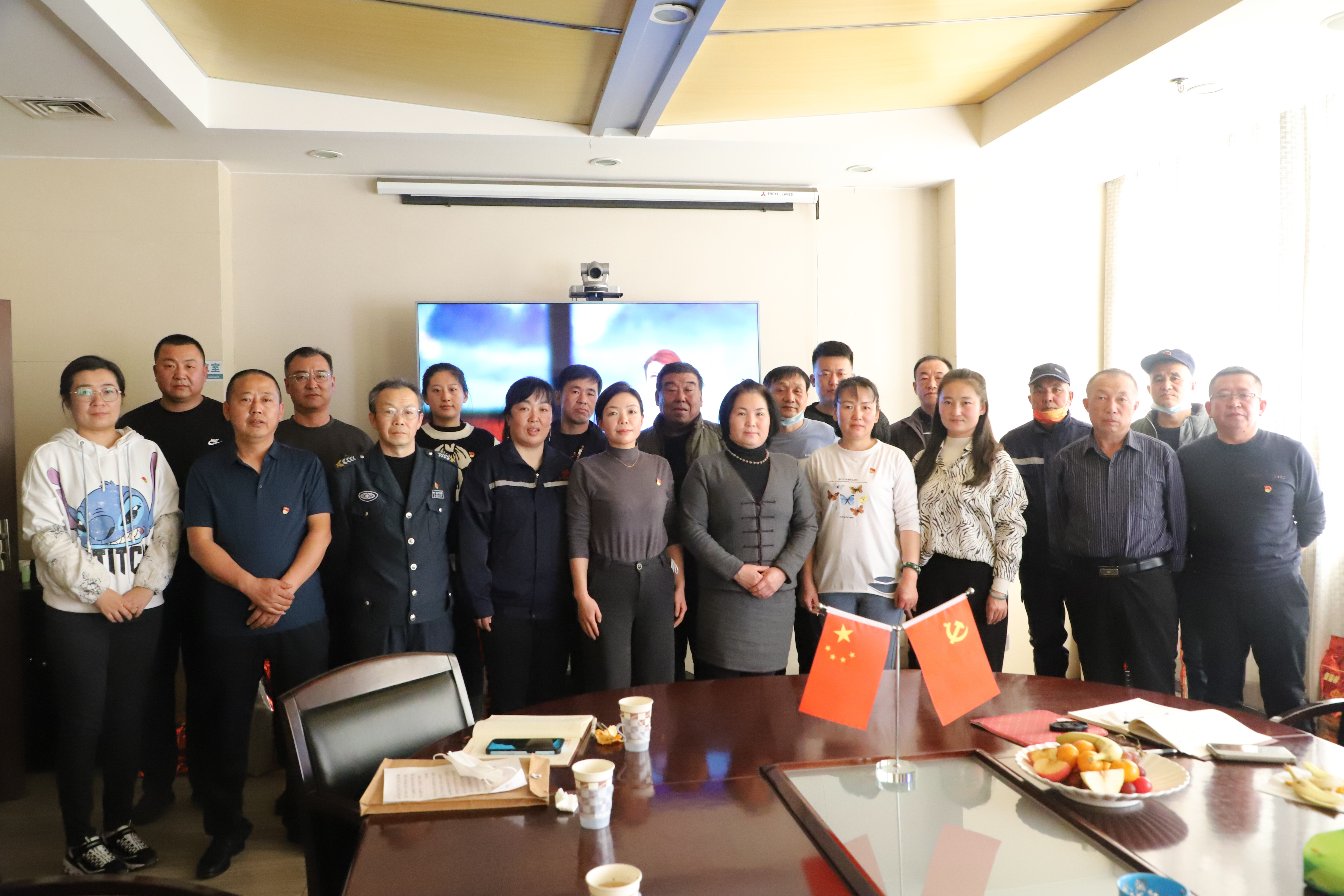党员用歌声表达对少数民族同胞的深厚感情,全体人员欣赏、学唱《中华民族一家亲》歌曲将活动推向高潮,并为他们发放纪念品,党支部书记、工会主席为因工作不能到场的少数民族员工送去纪念品,并询问了解生活、工作情况。
