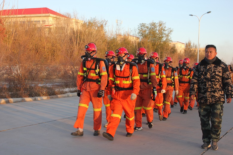 应急救援训练源于实战、严于实战、高于实战。为适应应急救援形势的不断发展变化,优化训练内容势在必行。本次冬季应急演练的项目主要包括高温浓烟演习巷道、万米耐力等。“平时多流汗,战时不流血”这是救援中队训练工作的核心价值所在。在训练过程中,全体参训指战员不怕苦、不怕累,每一个演练项目都严守操作规程,坚决服从命令、队员们协同配合,齐心协力以昂扬的精神状态成功完成了此次演练。