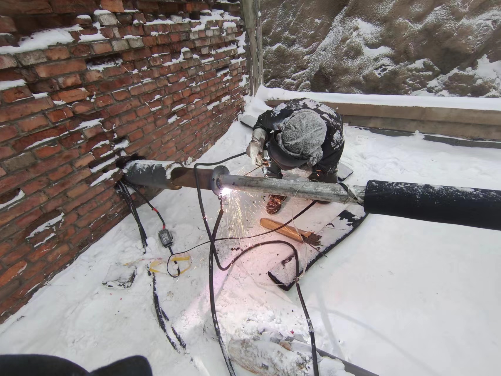 现场抢修人员不畏严寒顶着风雪趴在雪地里进行电焊作业,连续四五个小时焊接不间断,最终在抢修人员的齐心协力、共同努力下,用时2天圆满完成了抢修工作。