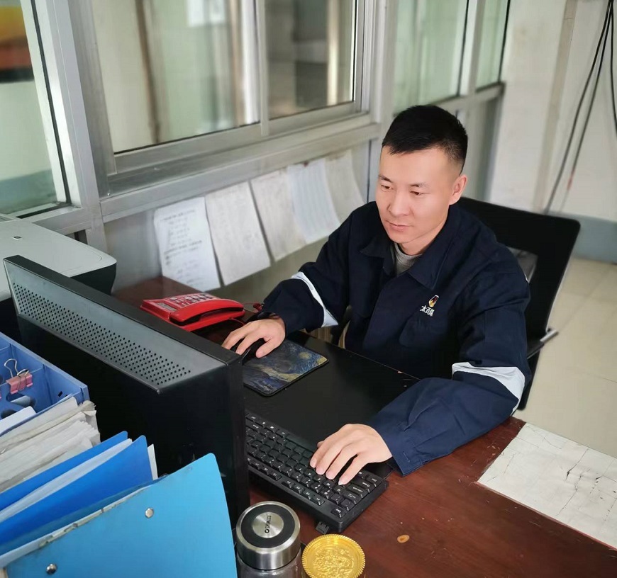 太西煤集团民勤实业有限公司红沙岗二号井安全环保科信息站工作人员王海胜正在对近期井上、下隐患排查治理整改情况进行跟踪闭环监督管理,确保隐患排查工作落到实处。