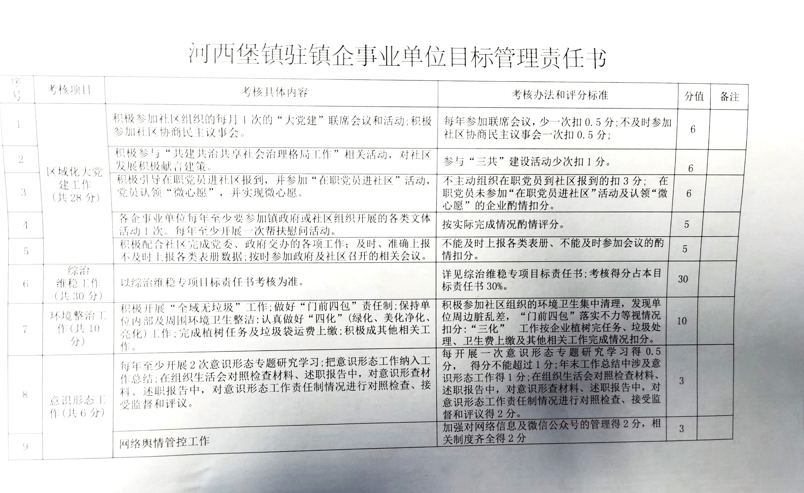 综合目标管理责任书从安全生产管理、生态环保工作、精神文明工作、意识形态工作、综治维稳工作等7个方面进行承诺管理。会议要求,各单位要进一步做好综治维稳工作和平安企业建设,完善管理制度、发挥群防群治作用,狠抓超前预防的各项措施,最大限度消除和化解各类不稳定因素。