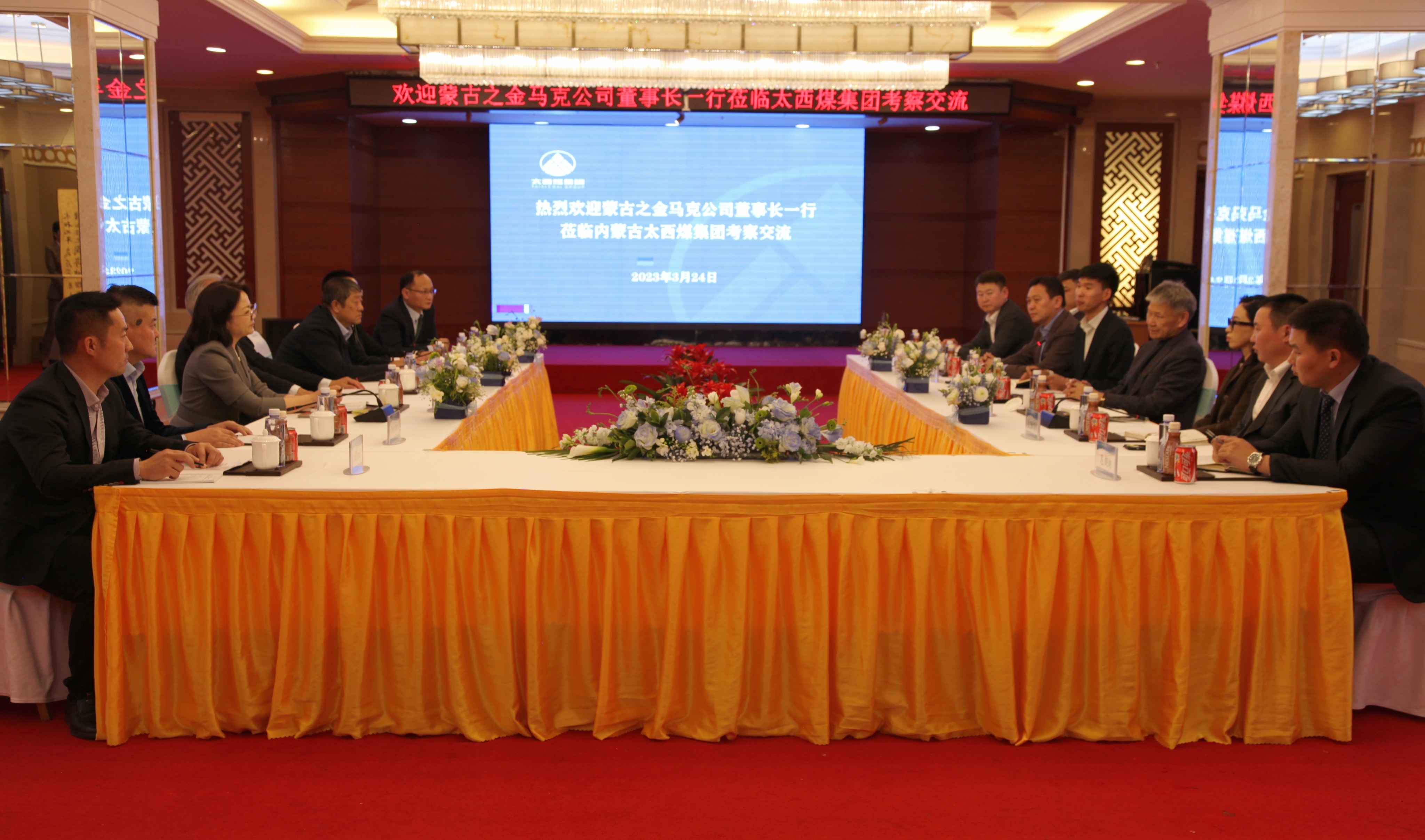 3月24日,蒙古之金马克公司董事长兵•尼玛太希尔、总裁尼•策乐门一行到太西煤集团考察,太西煤集团董事王以廷,党委书记、董事长王海霞会见。