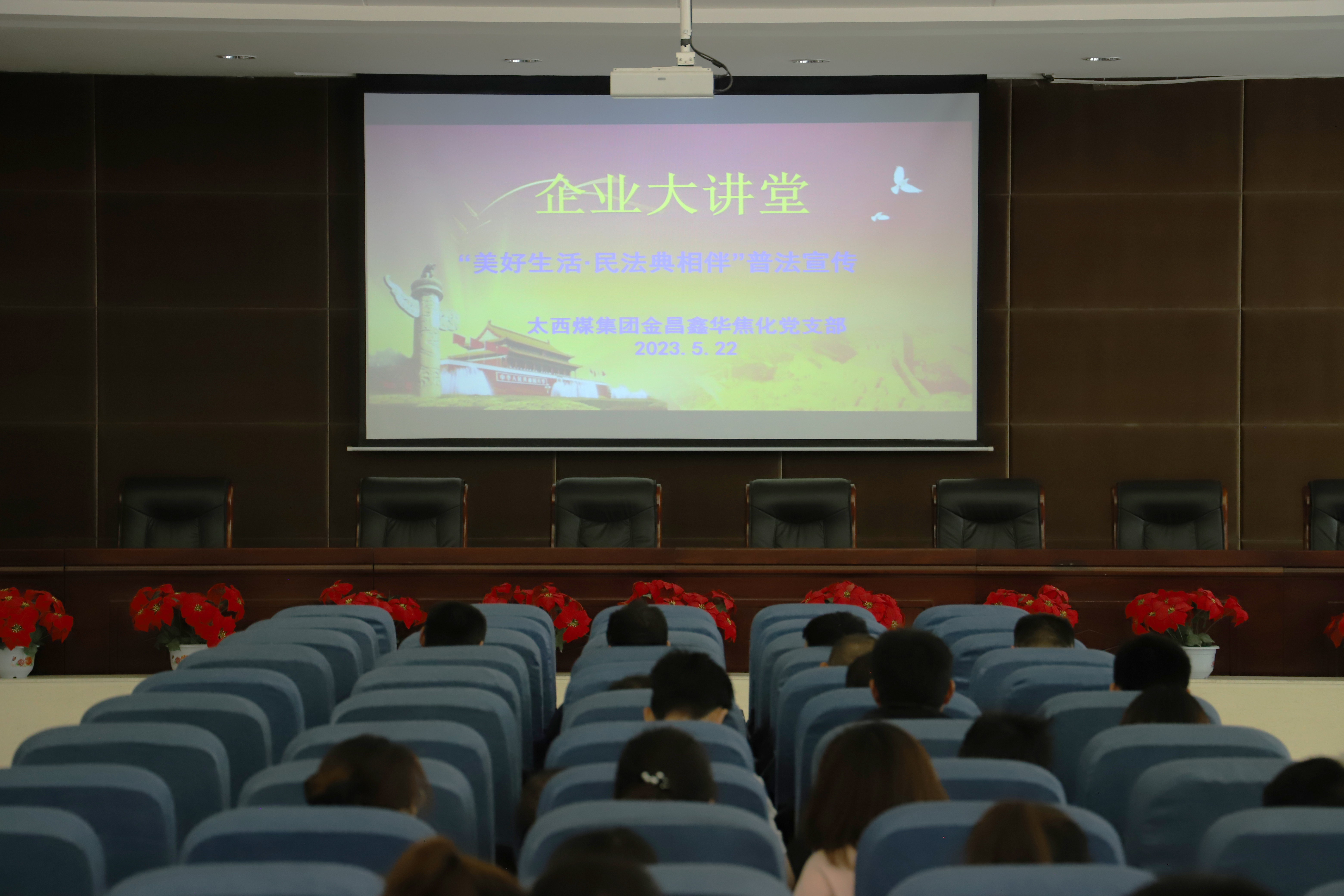 今年5月是第三个“民法典宣传月”,为学习贯彻党的二十大精神和习近平法治思想,切实做好《民法典》普法宣传工作,积极营造尊法、学法、守法、用法的浓厚氛围,全面推进依法治企,5月23日上午,金昌鑫华焦化公司党支部举办“美好生活·民法典相伴”普法企业讲堂,来自各车间岗位、职能部室人员参加。