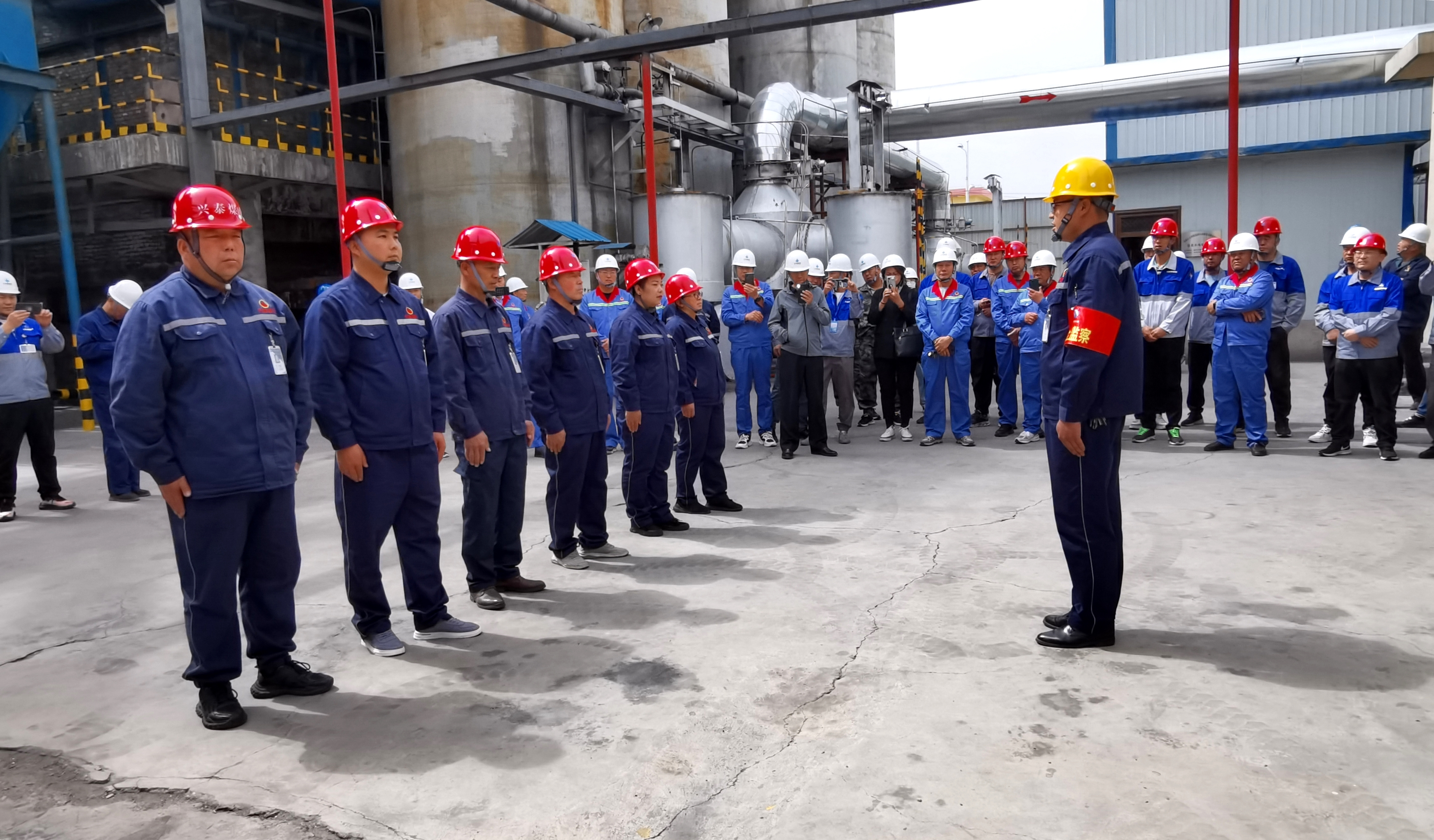 厂门口“曙光已现,扬帆远航正当时”的展板,直观地展现了兴泰煤化公司坚如磐石的改革信念。现场观摩中,大家对兴泰煤化巡检人员三人成列两人成行的队列半军事化管理、整齐划一的安全标线、各类备品备件整齐有序地摆放、产品库房分类码放干净整洁、班前会的科学化管理、食堂管理、目视标识化管理等现场改革管理取得的成效十分感兴趣,点赞交流,纷纷拍照记录。
