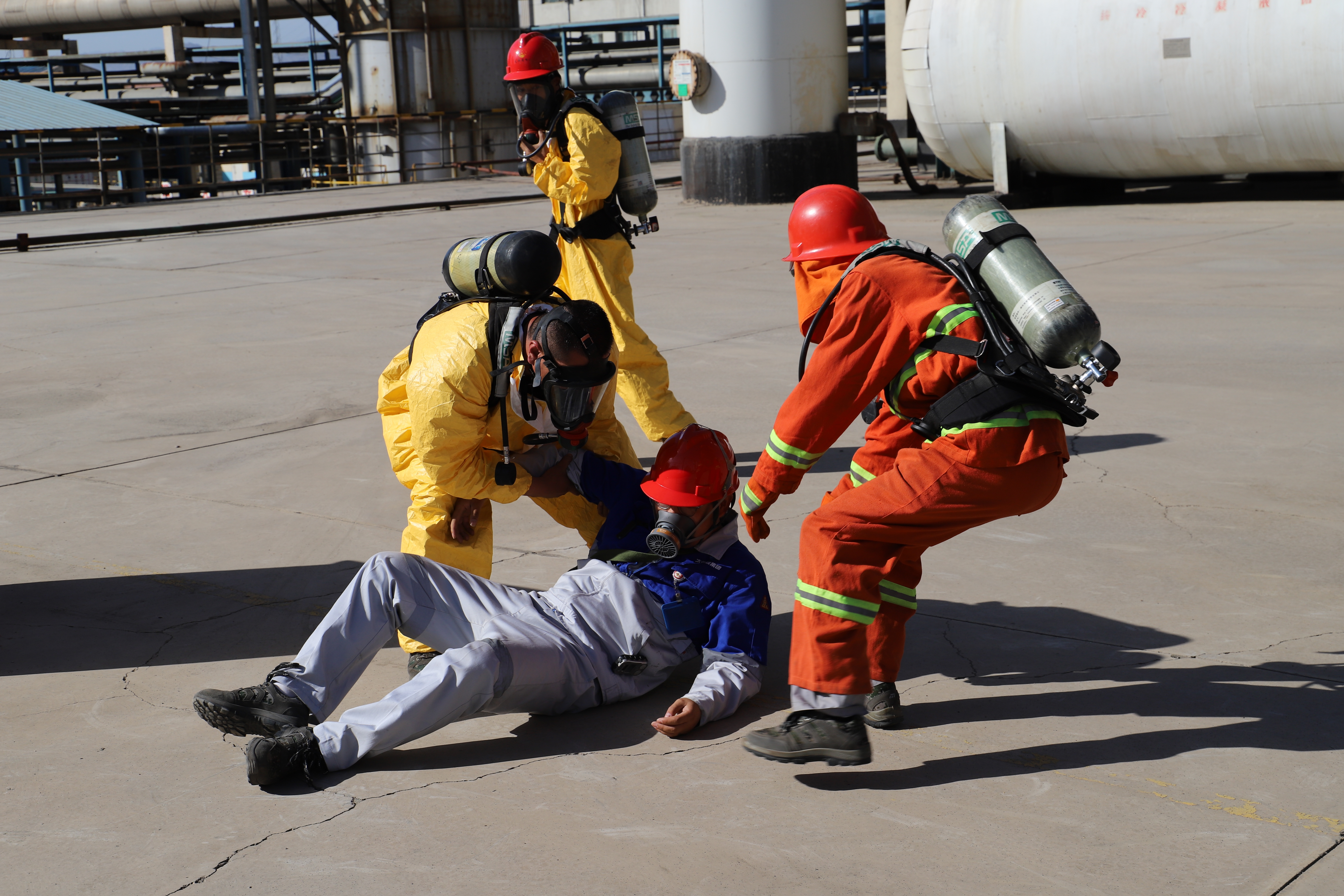 上午9:30应急预案演练开始,演练模拟化产粗苯生产装置区粗苯储槽泄漏、着火,启动车间级和公司级应急响应、救援、环境处置等过程,整个演练分:事故报告、应急响应和评估总结三个阶段。在整个演练过程中,各演练部门周密安排、精心组织和密切配合,各救援小组团结协作、各尽其职、密切协同、规范处置,各项演练科目有条不紊,事故抢险准确迅速,人员救护及时得当,物资保障充足得力,环境处置科学规范。演练达到了预期效果,取得了圆满成功。