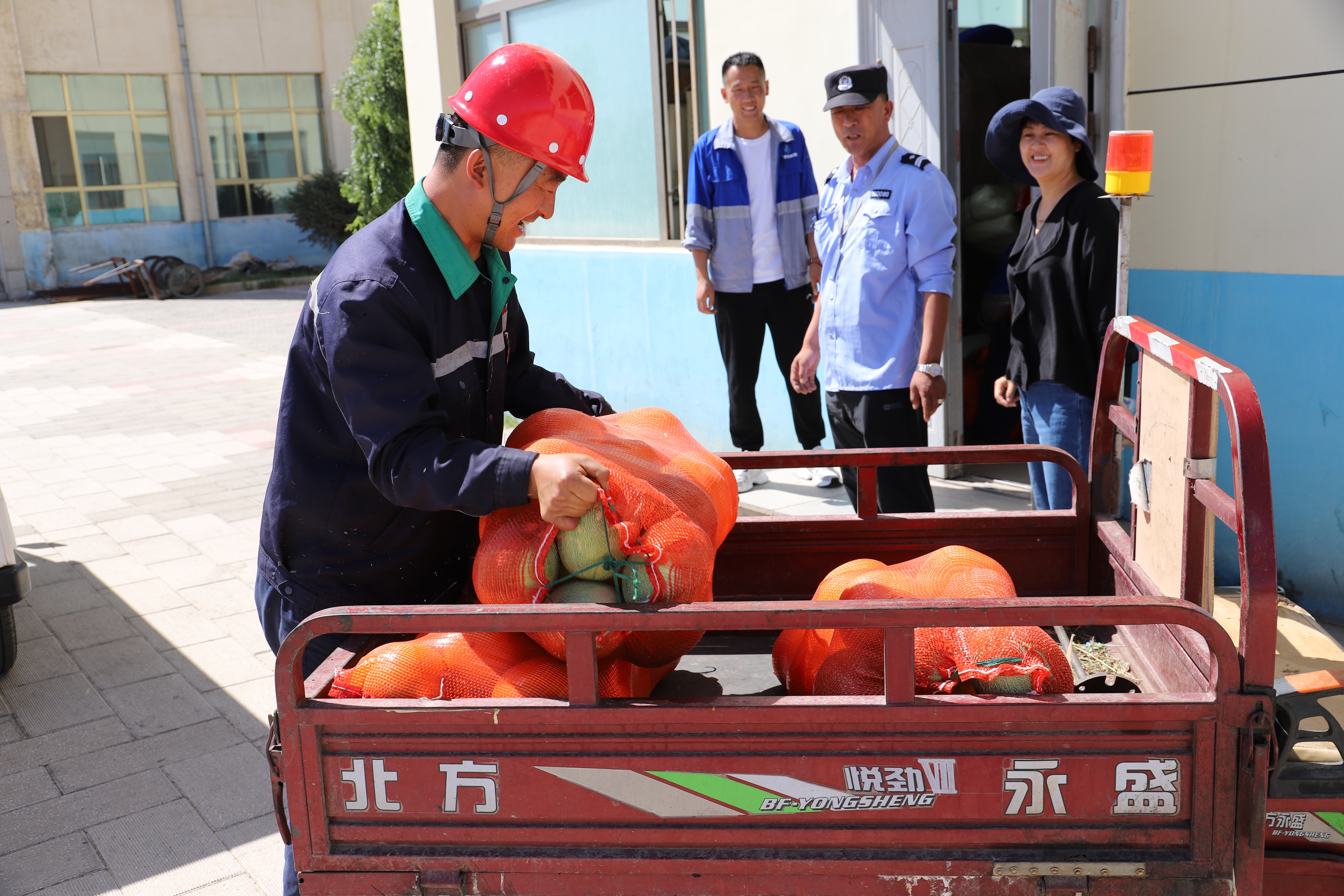 7月21日上午,永昌县人大常委会副主任刘晓梅、县政协副主席许小阳,县总工会党组书记、主席王秋水到金昌鑫华焦化公司开展“夏送清凉“活动,为高温期间坚守在生产一线的员工送来关怀和问候,送来清凉解暑4000斤西瓜和30箱清爽饮料。