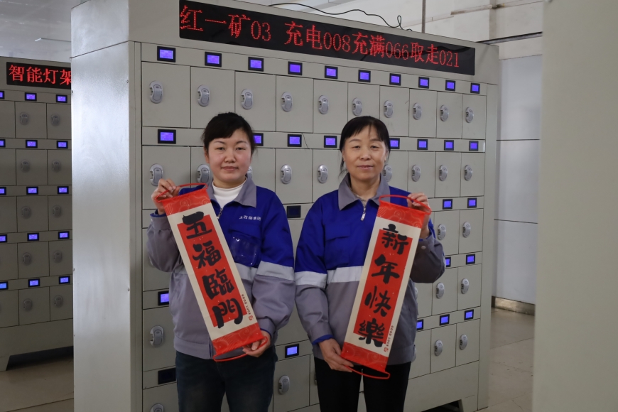 太西煤集团民勤实业有限公司红沙岗一号煤矿充灯房,充灯工负责矿灯充电工作,矿灯是每名作业人员入井时必须佩戴的,矿灯是矿工的眼睛。