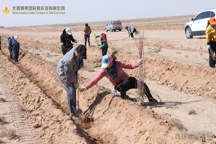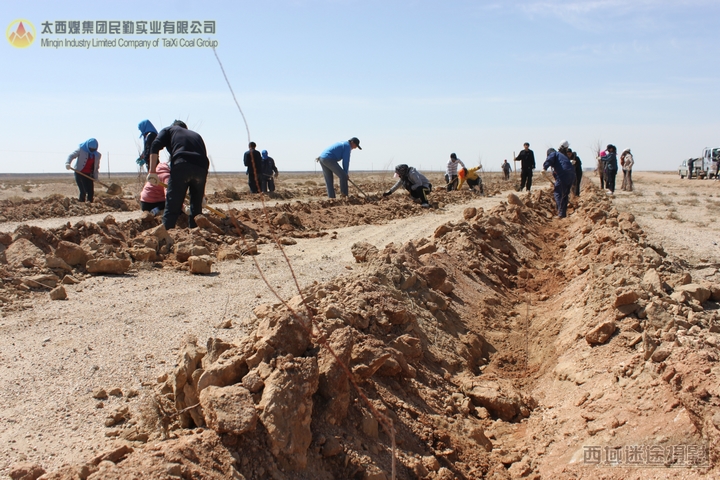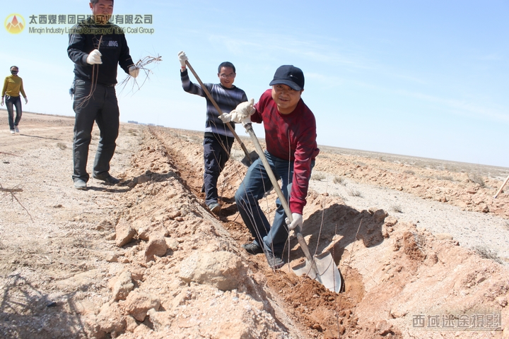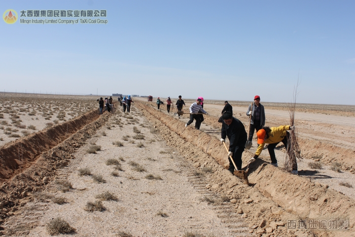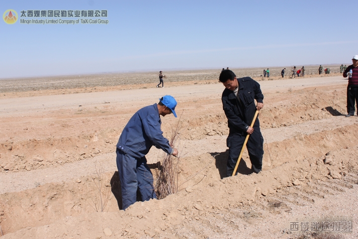 又是一年春天的到来,天气渐暖,民勤地区的风沙季节又将来临了,为阻挡风沙、改善职工工作及生活环境,太西煤集团民勤实业有限公司动员各部室员工于2012年4月7日开始进行为期15天的义务植树活动。