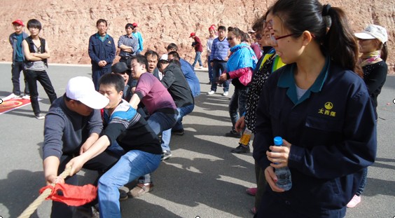 中午12点,常山实业公司楼前一阵热火朝天,青年团高举党旗,在鲜艳的国旗下共叙太西发展,畅谈人生理想,并进行了合影留念。午饭过后,常山实业公司青年团与民勤实业公司青年团赴额日布盖大峡谷进行了拔河、多人绑腿跑等联谊活动,青年团成员积极主动、踊跃参加,场面好不热闹。