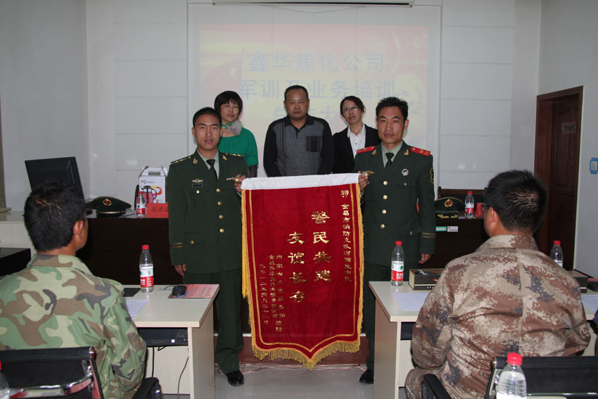 在会上河西堡消防中队队长杨庆超对金昌鑫华焦化公司参加本次培训员工吃苦耐劳,勇于拼搏、挑战自我的优秀品质给予了高度赞扬和评价。训练教官张彥海代表消防中队全体官兵对训练科目综合考评中取得优秀成绩的5名学员给予了表彰奖励。金昌鑫华焦化公司副总经理程万国和工会主席邱丽芳分别作了感谢讲话,并代表公司全体员工向消防官兵赠送了锦旗表示真诚的感谢,警民共建和谐企业,友谊长存。