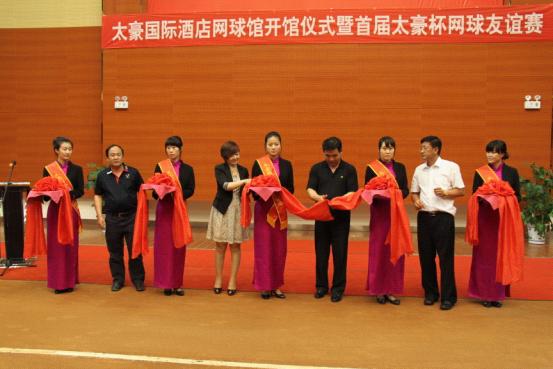 2012年6月17日21时30 分,太豪国际酒店灯火辉煌,人来人往,网球馆开业庆典在此隆重举行。阿拉善盟委书记云喜顺、盟委委员、政法委书记查斯太、盟委委员、军分区政委薛成有、盟委委员、秘书长高世宏、盟人大工委副主任、盟工会主席郭秀珍、副盟长赵占军、额济纳旗委副书记、旗长王维东及四大班子领导、太西煤集团公司总裁王海霞等领导出席庆典并剪彩。
