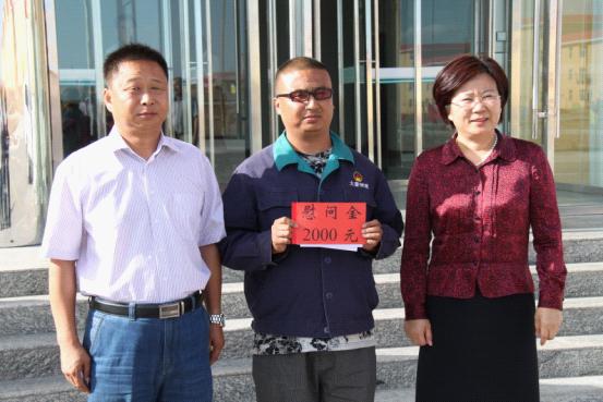 郭秀珍副主任代表盟工会慰问了太豪公司贫困员工张礼,并送上慰问金。