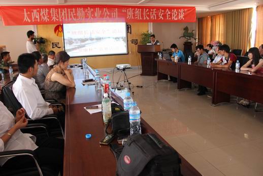 趁煤矿安全生产知识竞赛的热潮,2012年6月25日下午,民勤实业公司党工团、安监部又联合举办了“班组长话安全论坛”活动 。 参加本次论坛的有各矿安全负责人、各矿班组长、“安康杯”煤矿安全知识竞赛参赛选手和各部门员工代表,其中有9人做了讨论发言,他们认真准备了PPT、图片、音乐等,从各自本职工作入手,讨论、交流了作为班组领头人在管理过程中的做法、经验等,举例精典,说服力强。给员工上了一堂生动的安全教育课。