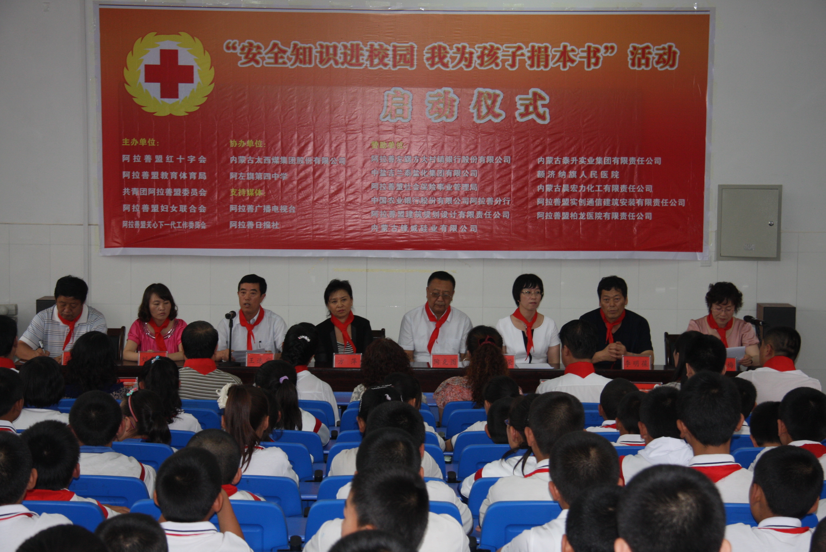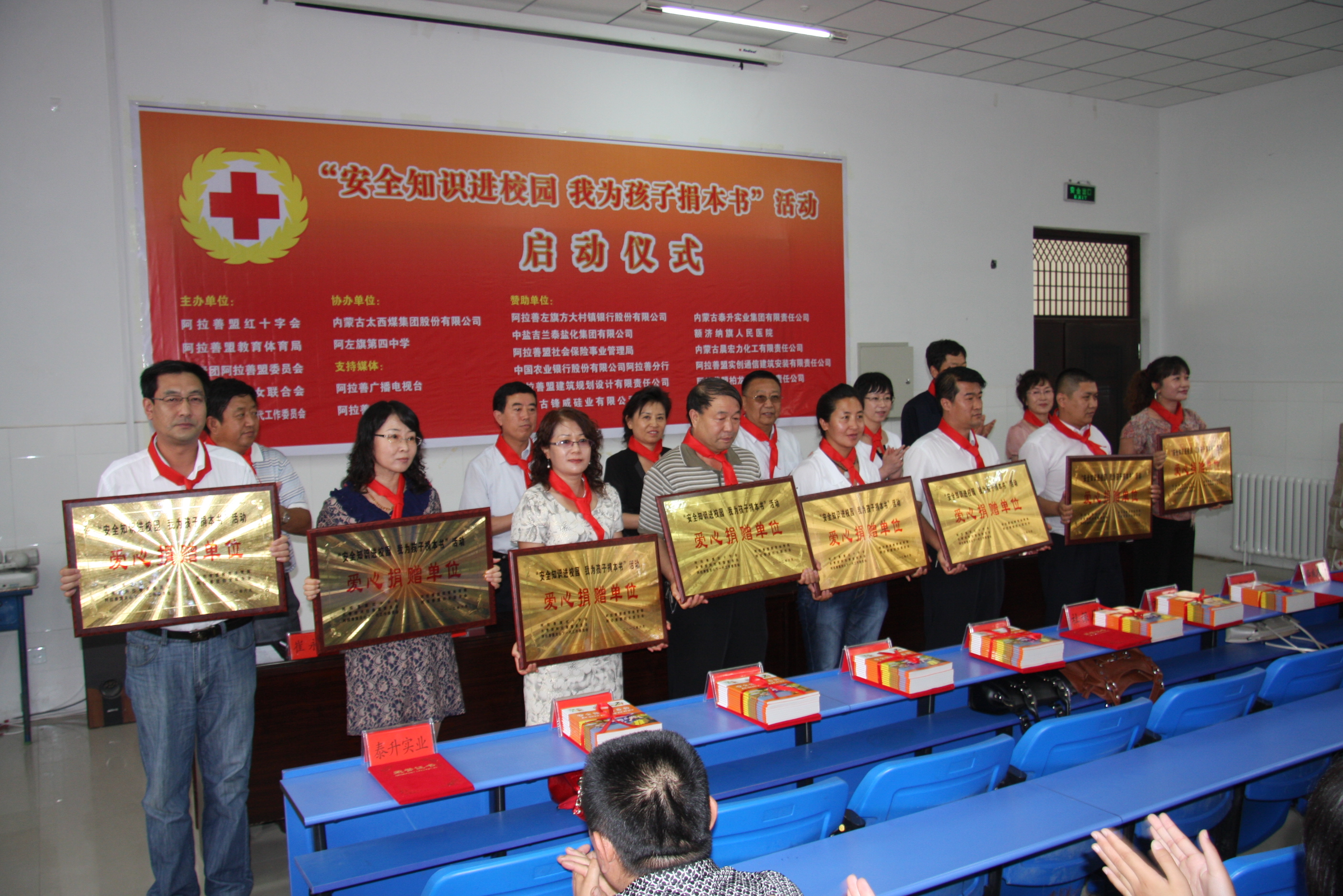 6月28日,由阿拉善盟红十字会、阿拉善盟教体局等单位联合举办的“安全知识进校园,我为孩子捐本书”献爱心捐赠仪式在阿左旗四中举行。此次活动得到全盟46家机关、企事业单位捐助善款共27万余元,认购图书2万余册。太西煤集团作为活动协办单位捐款82,200元订购《未成年人安全预防与自救》科普书籍6000册,向我盟青少年学生进行了捐赠。