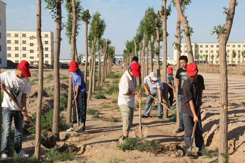 民勤实业公司红沙岗二矿一直把绿化作为矿区建设的重点,我矿自今年开春以来,为了防风治沙,先后绿化面积13亩,种植刺槐1725棵,成活率达到75%以上,为了美化环境,又在道路两旁种植了馒头花,油菜花,积极开展了绿化调整、浇水、除草、灭虫等工作,此次活动不仅为我矿增添了一份新绿,增强全员绿化美化家园的意识,也增强了矿区建设队伍的凝聚力和战斗力。