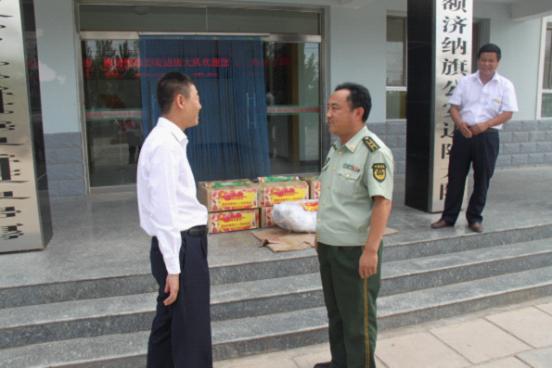 为庆祝中国人民解放军建军85周年,进一步弘扬拥军优属,拥政爱民的光荣传统,7月27日下午,太豪国际酒店常务副总经理任剑峰代表太豪国际物流有限公司、太豪国际酒店慰问了额济纳旗边防四团、边防大队、消防大队等单位全体官兵,并送去了太豪种养殖基地出产的绿色、无污染的有机蔬菜、水果等慰问品。