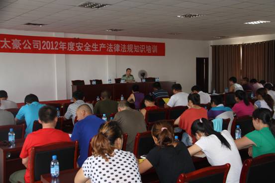 为把安全培训教育落到实处,全面提高公司全员安全责任意识、安全知识水平和事故防范能力,夯实安全生产基础管理工作,8月4日下午,太豪公司以开展“安全生产年活动”为契机,利用停车休整时机积极开展2012年度安全生产法律法规知识培训。