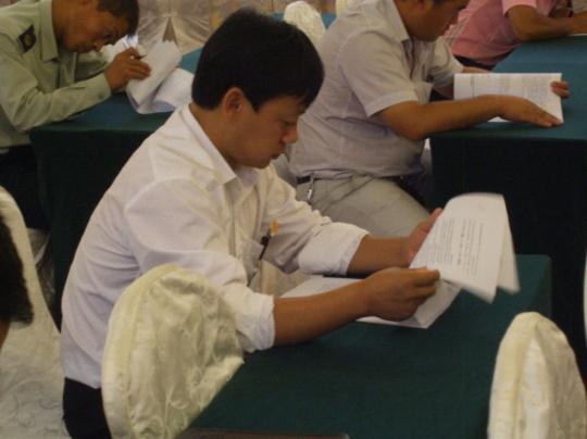 参加“班组长安全知识竞赛”现场,三位选手认真答题