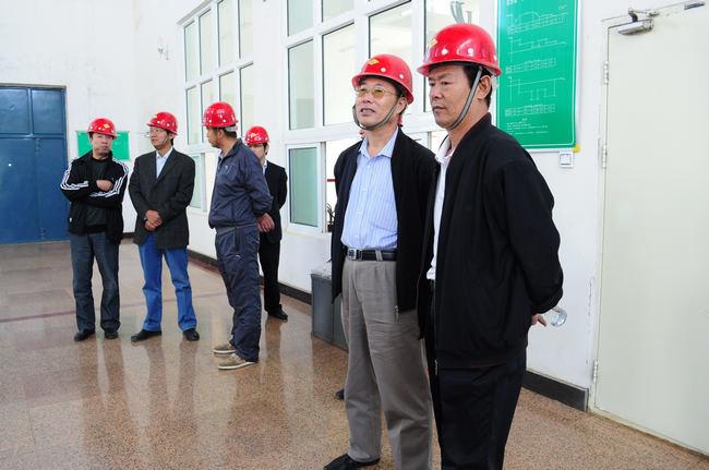 张家渔(左二)深入井下进行实地验收检查,民勤实业有限公司总经理王敬华陪同
