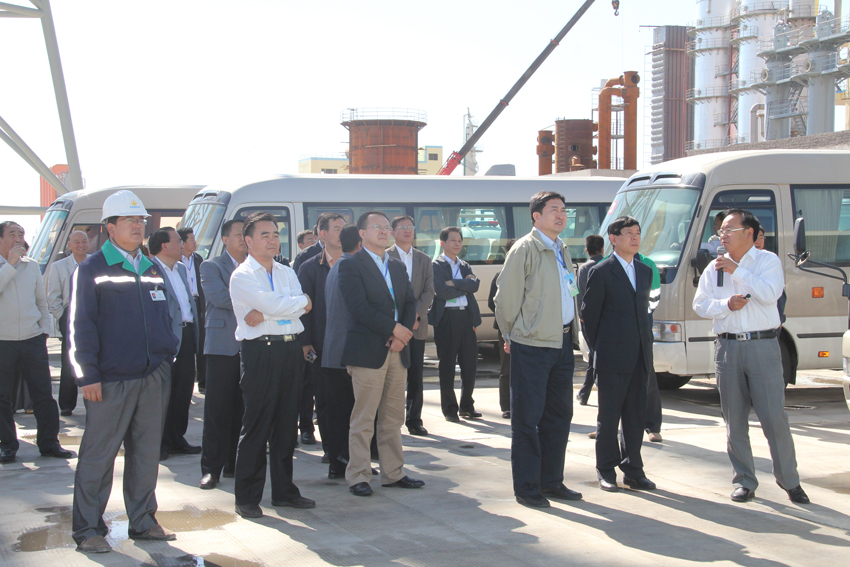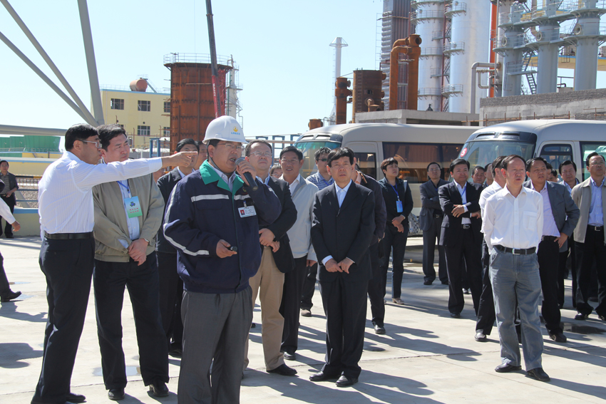 参观团一行详细听取了金昌鑫华焦化公司常务副总经理赵排行对太西煤集团产业发展布局、公司内部产业链之间循环再利用以及与河西堡循环经济产业园上下游企业的衔接与配套工程的实施、运行情况的介绍后,各位领导及与会代表对内蒙古太西煤集团跨省市投资建设的宏伟蓝图、解决当地就业、推动金昌市经济跨越式发展所做出的贡献深表赞赏。