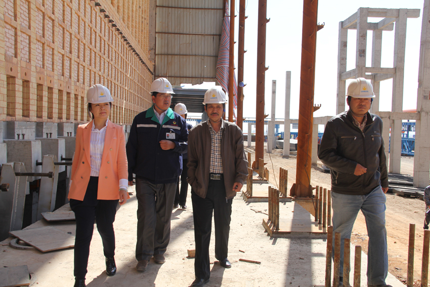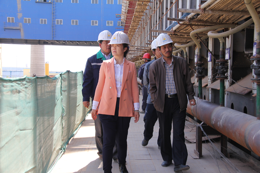 总裁在听取了1#焦炉烘炉的工艺流程及目前的炉内状况和炉温状态;2#焦炉工程建设情况、预计烘炉的时间;现阶段调入精煤的价格、煤源、质量、数量、运输费运以及投产后所产出焦炭的成本;场内铁路运输线的设计施工和建成投入使用后的运行路线;调度楼装修方案、基本造价和预计投入使用的时间等情况的介绍和汇报后,与陪同的公司负责人就相关问题做了进一步的探讨、研究和交流,并提出了指导性的意见和建议。她对公司在完成工程建设中务实管理,扎实推进的工作作风给予了肯定和评价。